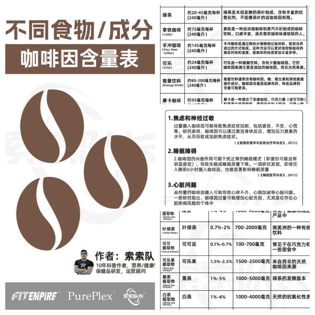 如果擔心咖啡因過量的話,可以參考索隊的電子書:《不同食物/成分咖啡因含量表》。