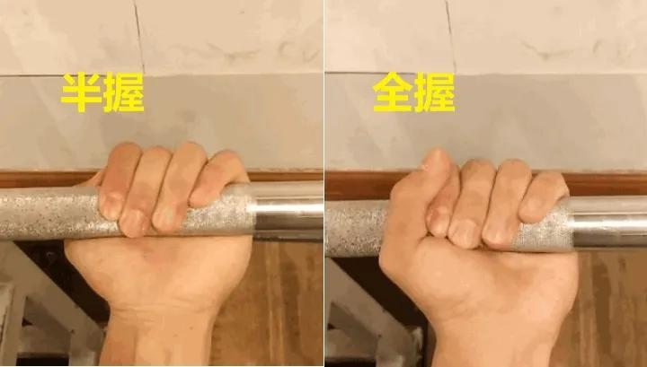 在這裏建議大重量訓練時請採用全握法。全握法是四指位於槓鈴杆一側,大拇指位於另一側,大拇指在四指之上,五指能全部緊緊握住槓鈴杆。這種握法不僅能夠抓緊抓牢,還可以承受更大的重量。