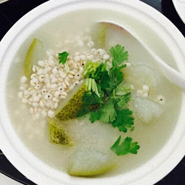 冬瓜,富含水分且熱量極低,具有清熱利水、消腫解毒的功效。薏米則有利水滲溼、健脾止瀉的作用。