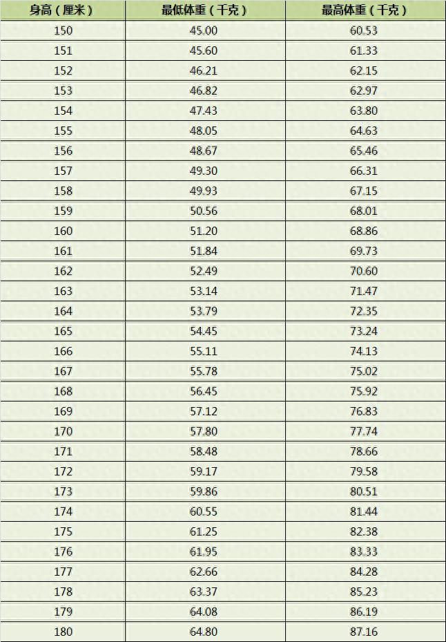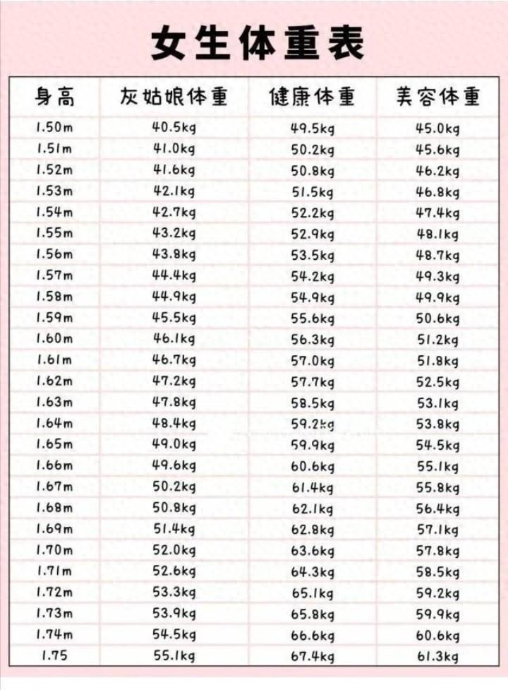 我們來看看2025年的標準體重對照表,看看你屬於健康體重還是超重了?