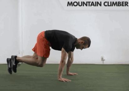 動作標準:雙手撐地,身體呈平板支撐姿勢,雙腿快速交替向胸前靠攏,對於核心肌羣的鍛鍊效果顯著。動作堅持30秒,休息10秒鐘,開啓新一輪訓練。