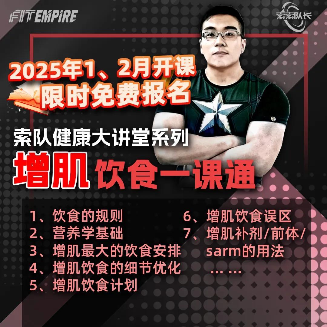 索隊的2025年重磅免費講座:《增肌飲食一課通》,系統化的講解健身營養的所有知識。