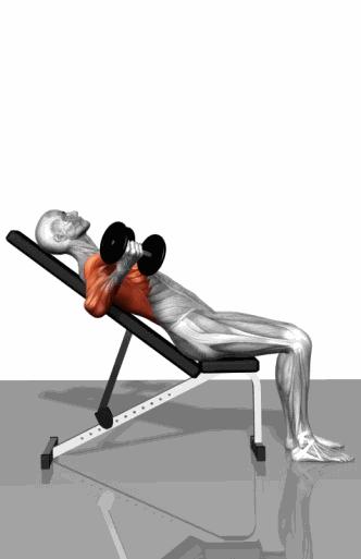 雙手握住啞鈴,按照與平板臥推相似的動作進行推起和下放。
