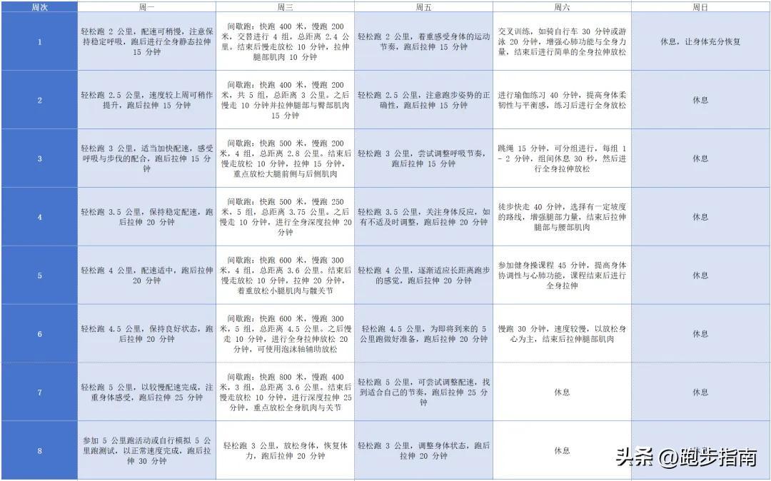 到第八週,經過持續訓練,跑者基本能連續跑完5公里。