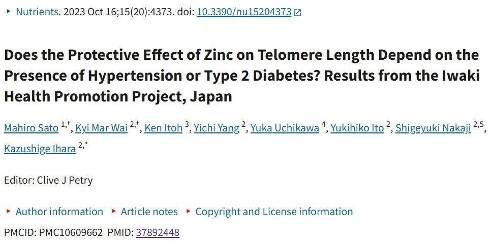 2023年10月日本大學發表在《營養素》上的一項研究發現,體內鋅水平較高可能與壽命的延長有關。