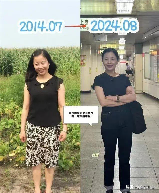 還有這樣一組對比,通過長達 10 年的跑步,這位女士越跑越年輕,顯得更加幹練有精神。