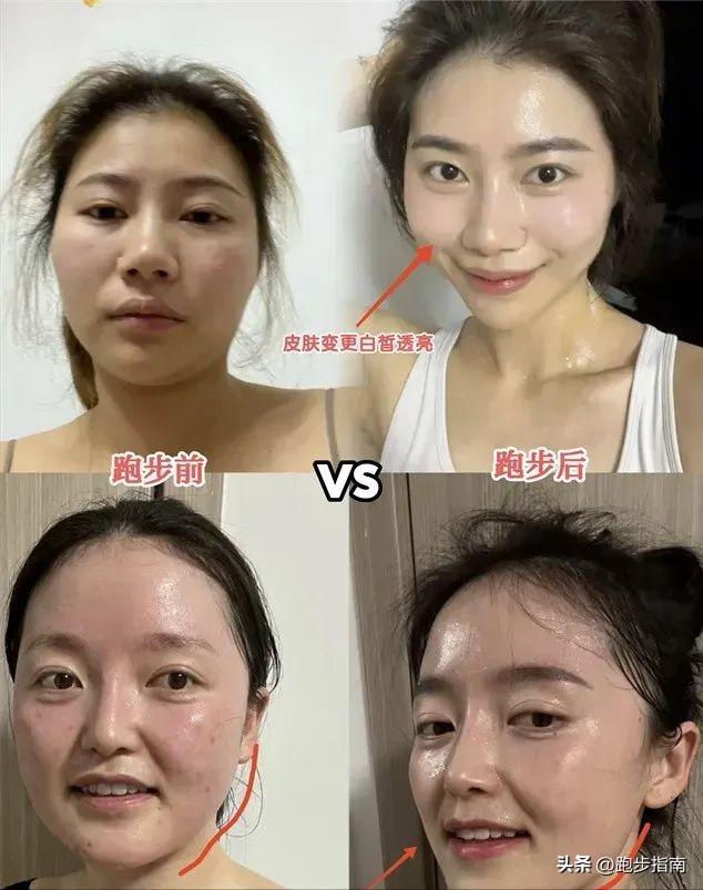 再看這組對比,跑步後的皮膚狀態明顯改善。跑步能夠促進新陳代謝,讓原本暗沉的皮膚變得光滑細膩。只要在外出跑步時做好防曬措施,合理控制運動強度,不出 3 個月,就能看到皮膚的明顯變化。
