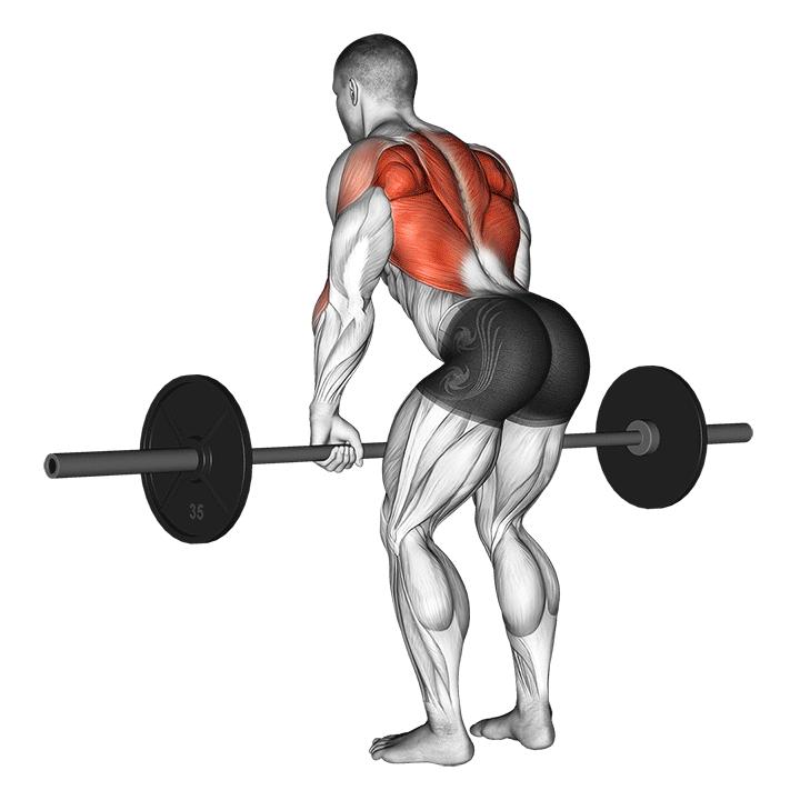 動作詳解:雙腳與肩同寬站立,膝蓋微微彎曲,俯身約 45 度,雙手握住槓鈴,握距略寬於肩部。啓動時,先通過背部肌肉發力,帶動手臂將槓鈴沿着小腿方向提拉。