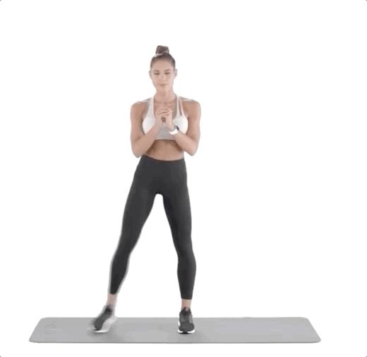 動作要領:雙腳併攏站立,向前邁出一大步,前腿屈膝呈90度,後腿膝蓋接近地面但不要觸地。保持上半身挺直,眼睛平視前方,身體重心在兩腳之間。前腿用力蹬地,回到起始位置,換另一側重複動作。