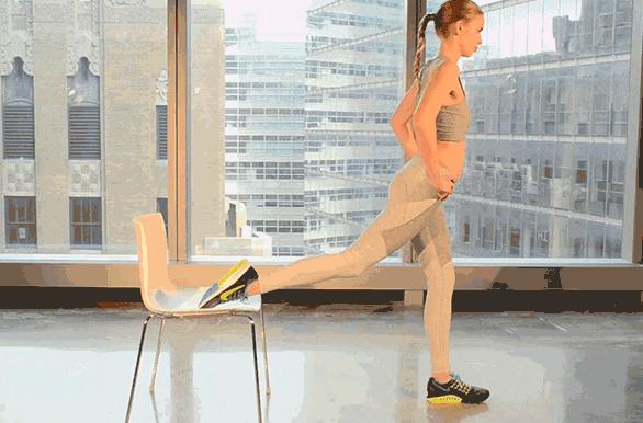 動作要領:找一個穩定的支撐物,如椅子或臺階,將一隻腳放在支撐物上,另一隻腳向前邁出一小步。身體挺直,核心收緊,緩慢地下蹲,前腿膝蓋彎曲接近地面,後腿自然下垂。