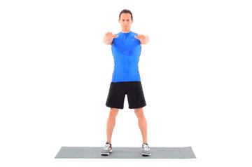 動作要領:雙腳與肩同寬,腳尖微微向外打開。背部挺直,收緊腹部,保持身體的穩定。然後緩慢地下蹲,膝蓋不要超過腳尖,注意保持膝蓋與腳尖方向一致,不要內扣。