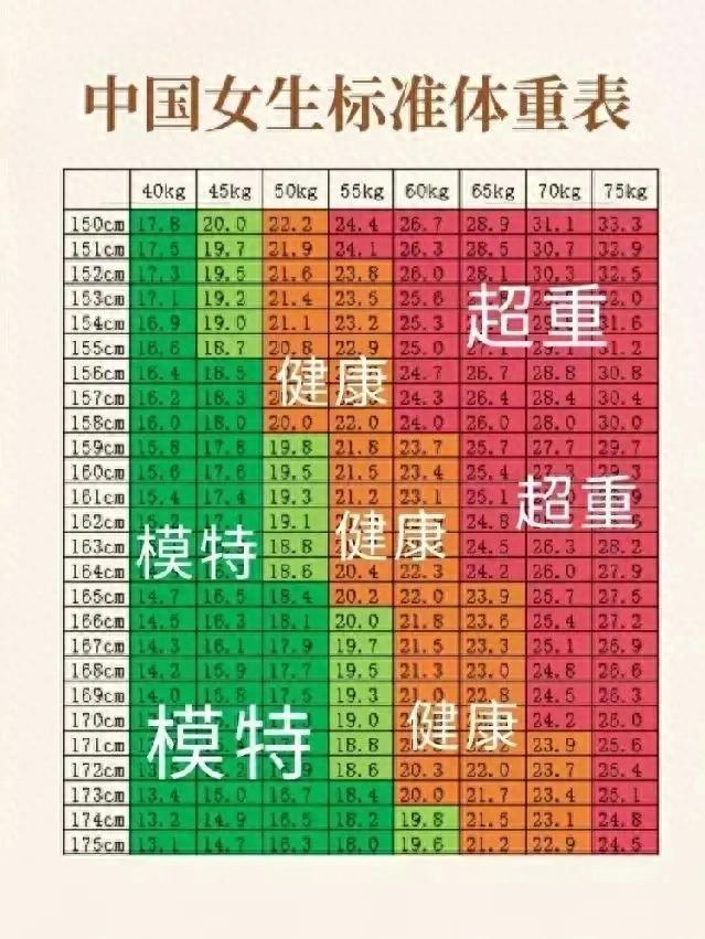 女生,希望別再體重焦慮了!不同身高的人,對應的標準體重是不同的,我們可以通過下面的表格對號入座,看看你屬於什麼身材?