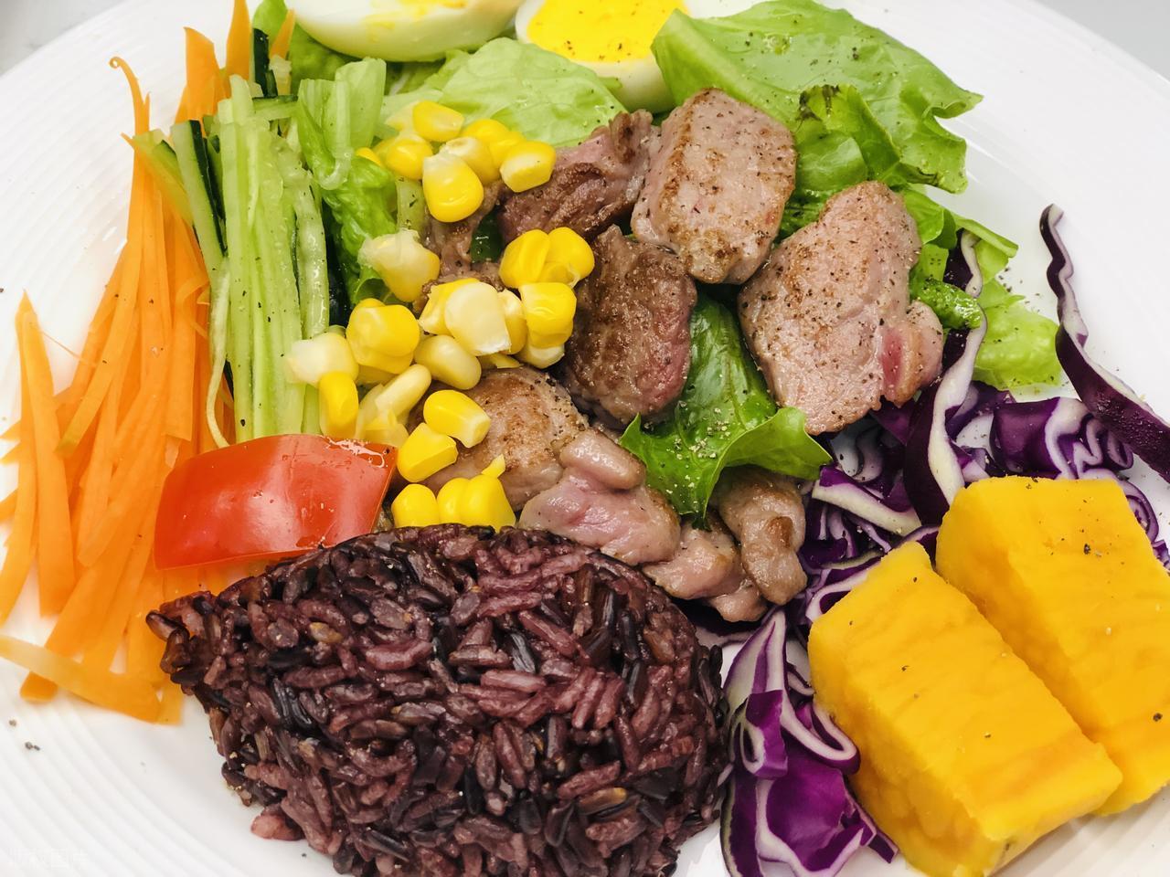 早餐喫2克水煮蛋(140大卡),午餐喫2片全麥麪包(145大卡)+200克清炒時蔬(100大卡),晚餐喫一塊雞胸肉(150大卡)+一個蒸紅薯(150大卡),熱量合計685大卡。