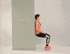 - 緩慢下蹲,直到臀部靠近牆壁,膝蓋與腳尖方向一致,保持這個姿勢1-2分鐘。