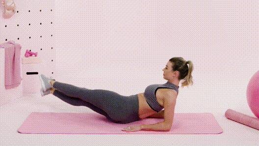 - 先緩慢卷腹上半身,保持身體平衡,使肩胛骨離地。