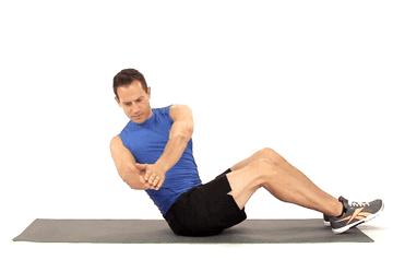 - 動作標準:坐姿,雙腳離地或輕點地,雙手合十,左右轉動軀幹。進階訓練:可以手持啞鈴/水瓶增加負重。動作進行12-15次,左右各2組。