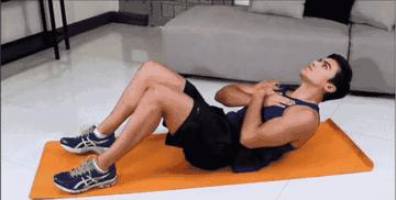 - 動作標準:仰臥狀態,膝蓋彎曲,雙手輕放耳側,慢慢捲起上背部,下背部貼地,感受腹部發力。動作進行10-12次,重複2組。