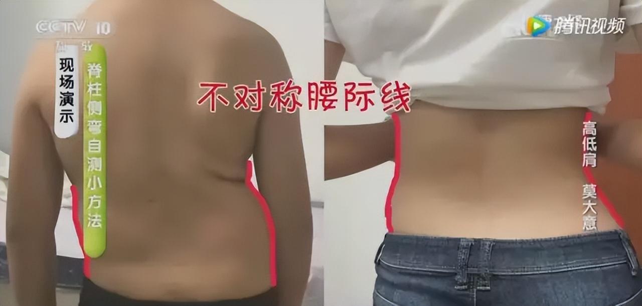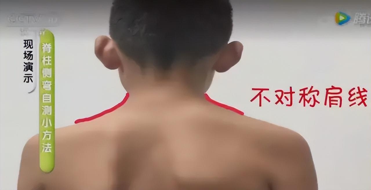 人的肩形不一樣,有的人肩比較方,有的人肩比較溜,但兩側肩線應該是對稱的。如果肩線對稱,說明胸段脊柱沒有問題。若是出現了明顯的“一肩高、一肩低”,就可能是脊柱側彎的表現。