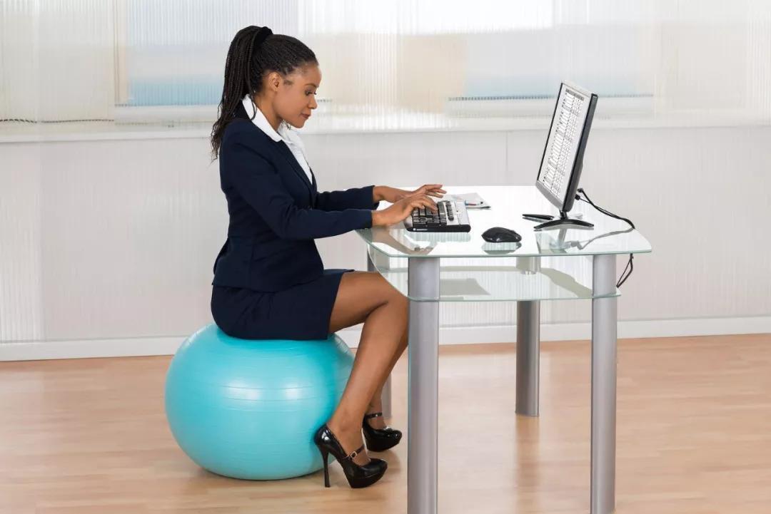 給大家一個小建議,可以試着把你的辦公椅換成健身球,因爲一旦你的坐姿如果發生嚴重變形,你是沒有辦法坐在健身球上的,所以你的身體自然會坐正、坐好。
