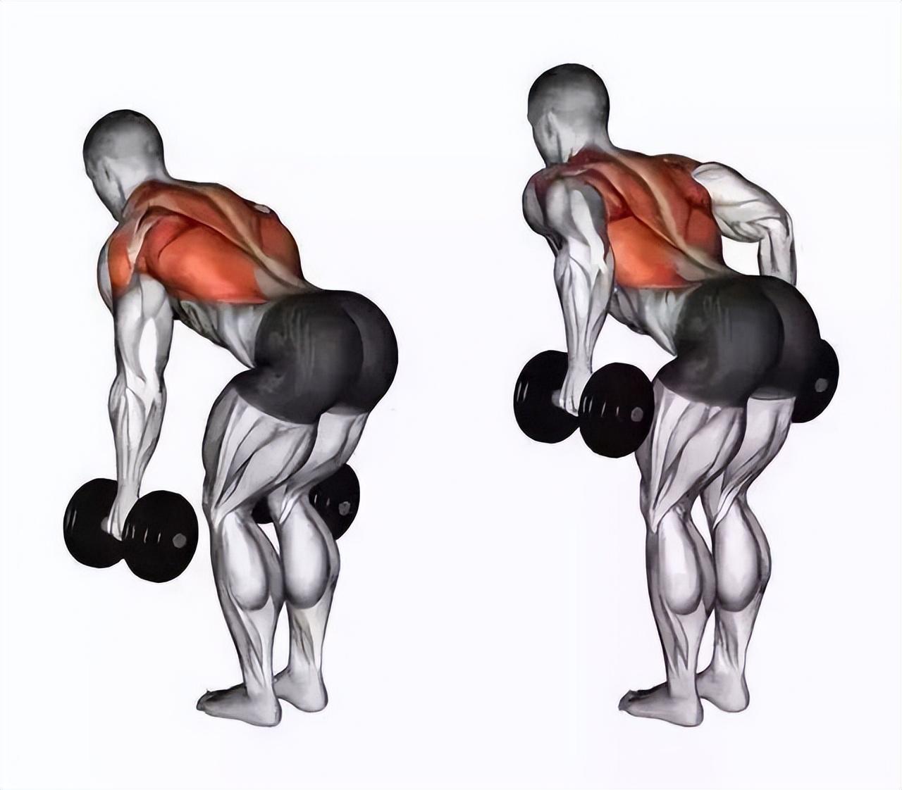 動作1、啞鈴划船 / 彈力帶划船:練背部厚度