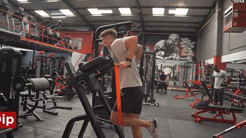 和健身房的器械輔助比起來,用彈力帶幫忙做雙槓臂屈伸,其實更接近你用自身體重訓練的感覺,所以鍛鍊效果也更棒。
