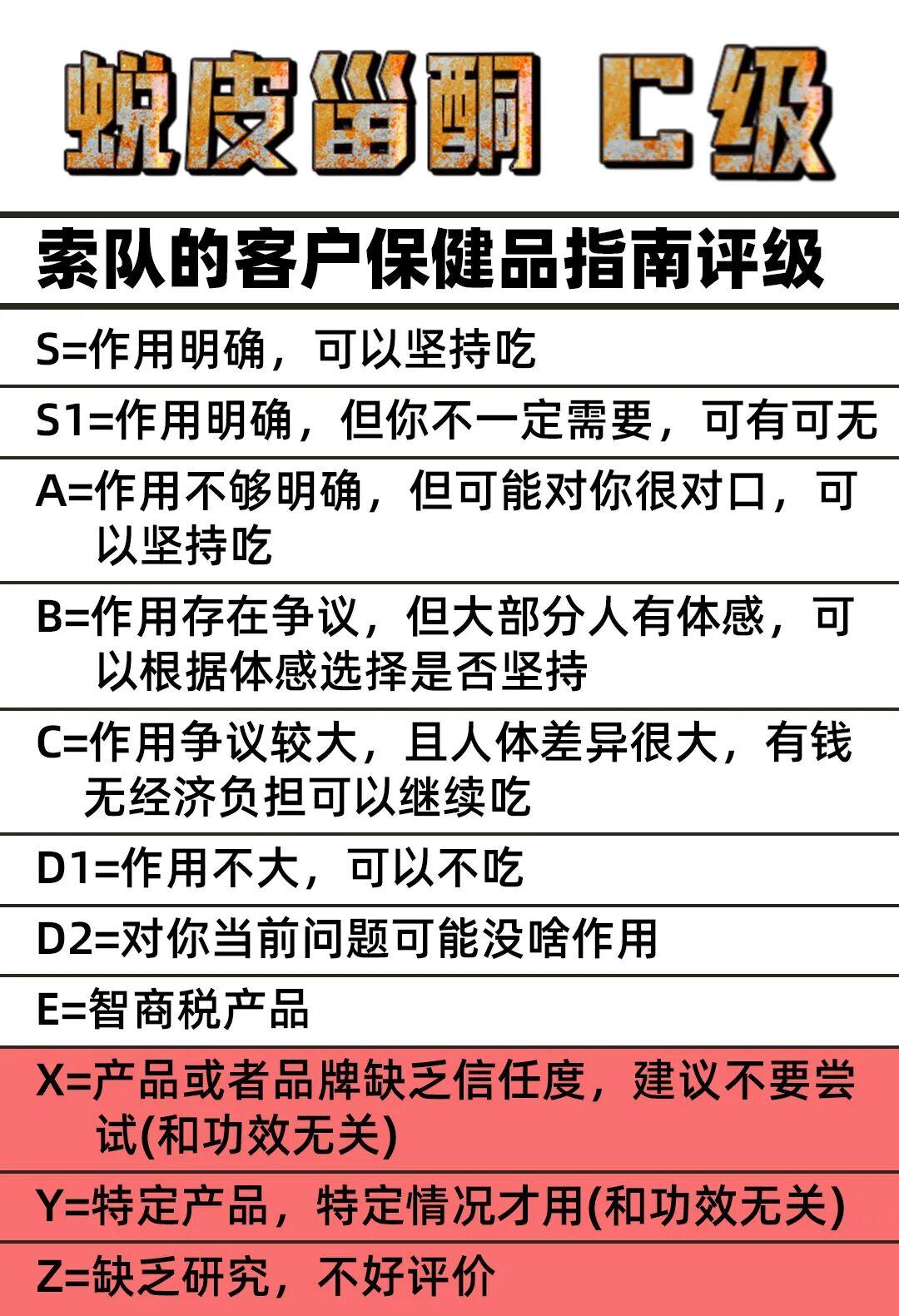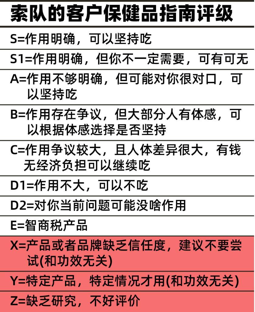 大家先了解下索隊的保健品評級:會從研究+論文質量+個人體感+性價比多角度進行評級。