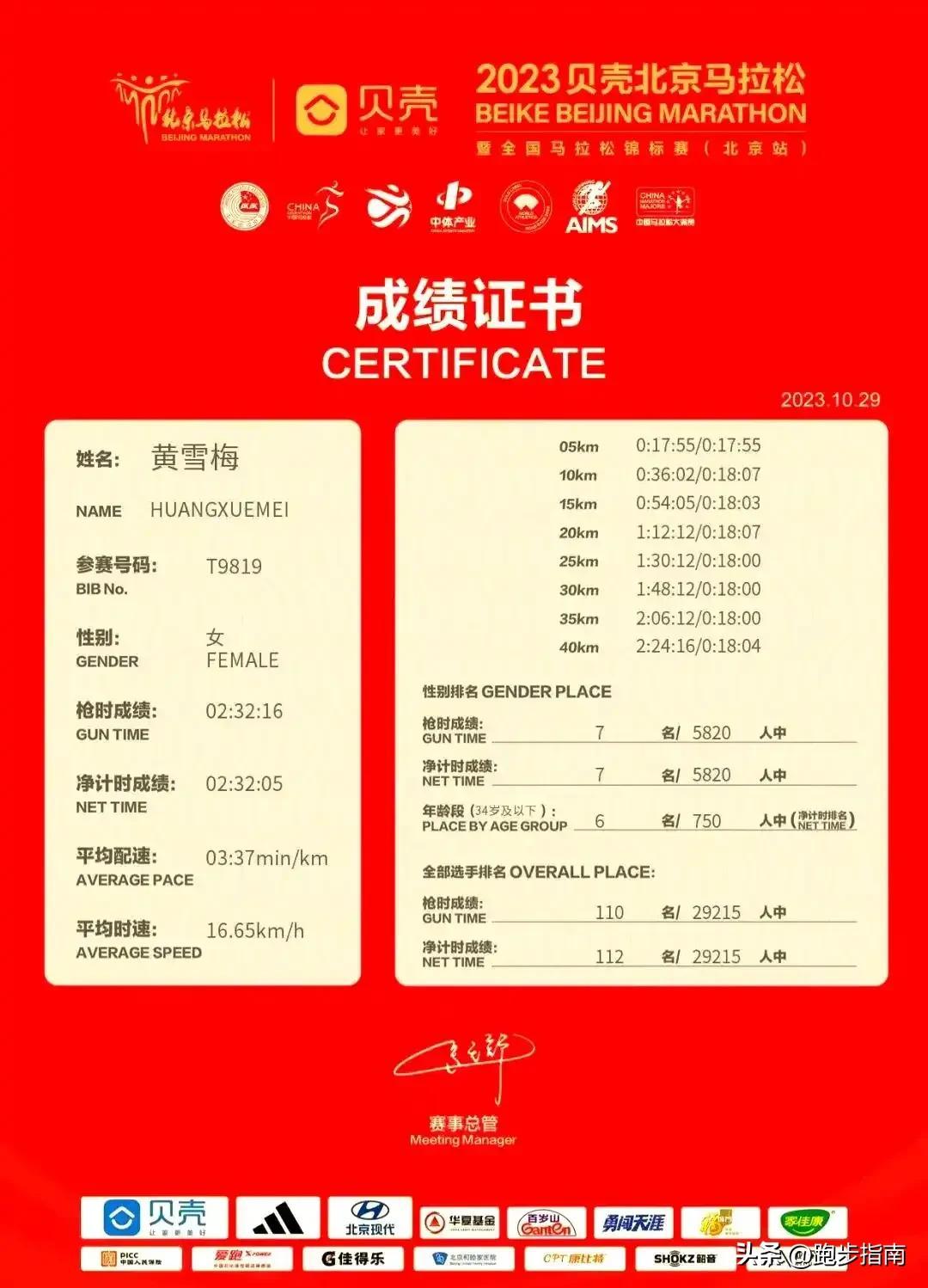 黃雪梅的本職工作,給了她輕裝上陣的底氣。她不用爲了獎金硬生硬氣的跑長距離,爲了錢扎堆兒往路上曬訓練,也能在賽場上穩定發揮,越跑pb越高。跑步帶來的成就感,也讓她在工作中更加從容不迫,良性循環。