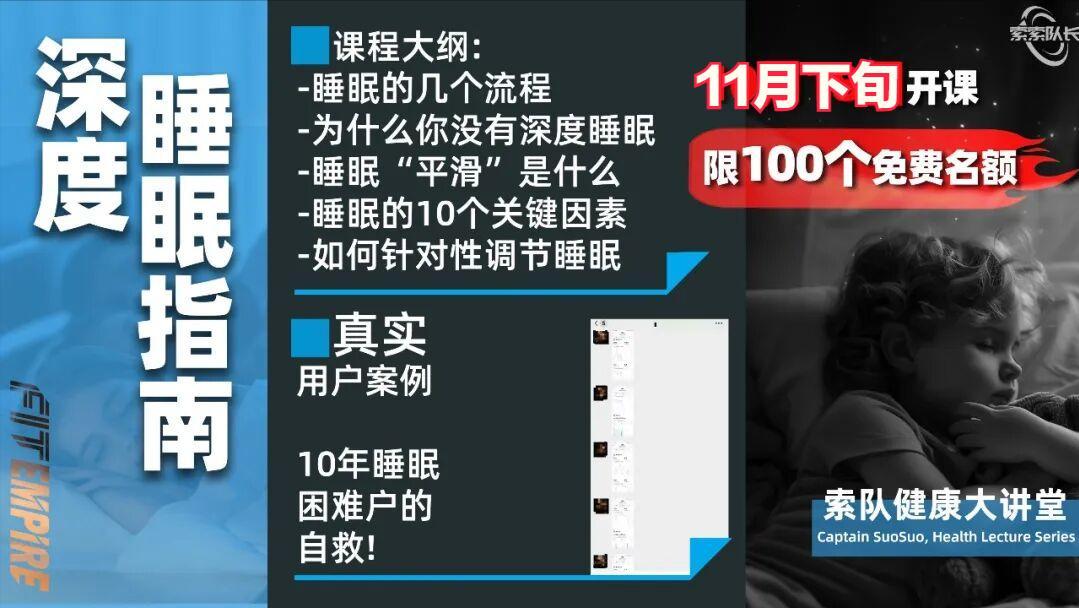 如果你對自己的健康比較負責,也經常苦惱,睡不好,歡迎參與索隊的《深度睡眠指南課》,這次又是全新的課程+課件,價值非常高。