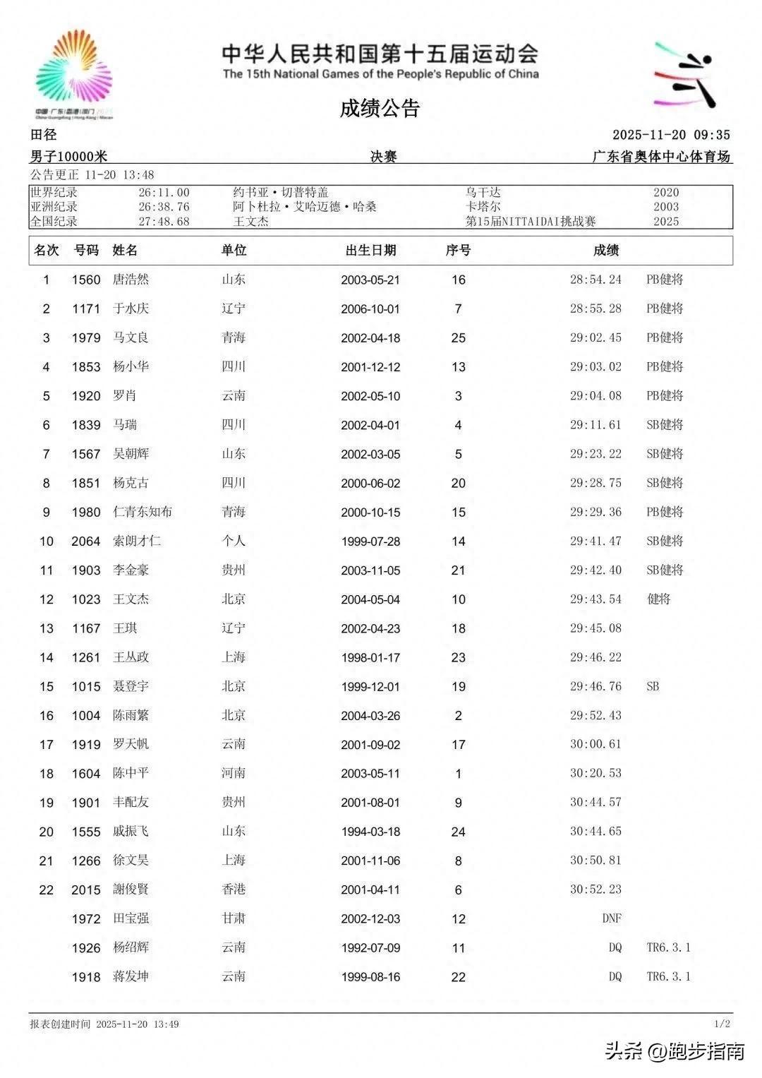 就在我發出突發!全運會10000米成績暫撤待仲裁,金牌歸屬存變數 這篇文章沒多久,蔣發坤的萬米金牌被取消的消息就來了!