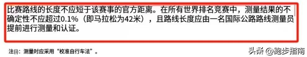 根據世界田聯規則,馬拉松賽道距離不得短於正式距離,世界排名賽的測量誤差還不能超過0.1%(即42米)。