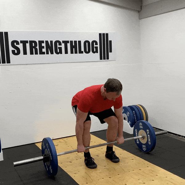 -保持背部挺直,挺胸,收緊你的核心並確保肩膀稍微在槓鈴前方,並且髖部應該高於膝蓋,但低於肩膀。