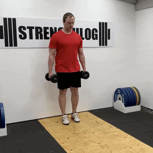 -拿起一對啞鈴,將它們舉到和肩膀差不多高,這就是起始位置。