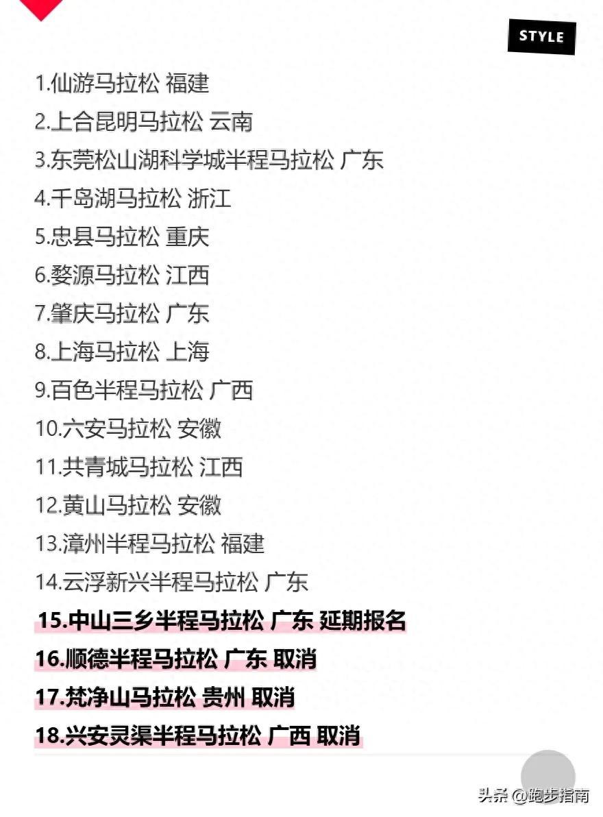 其中12場爲田協A類賽事,包括白金標上海馬拉松、新金標上合昆明馬拉松領銜,風景型、福利型賽事各展風采,導致衆多跑友表示"選擇困難綜合症"!