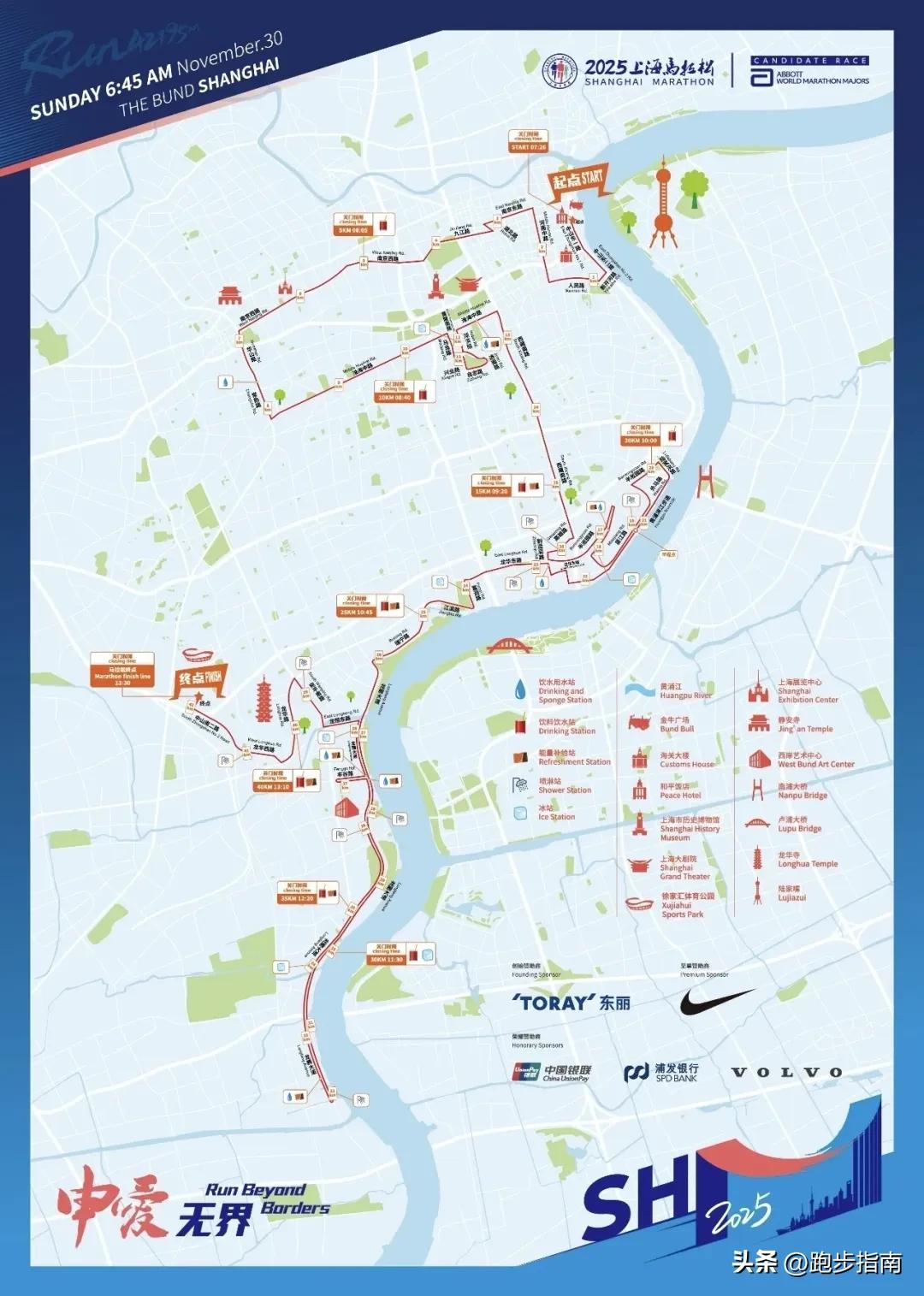 依舊被冠以"最難中籤賽事"的標籤,賽道也依舊: 起於外灘金牛廣場,前10公里萬國建築羣、陸家嘴天際線,中途穿城而過的是梧桐淮海路、石庫門裏弄,後半程平坦的路況和密集的補給,爲跑友創造佳績保駕護航。