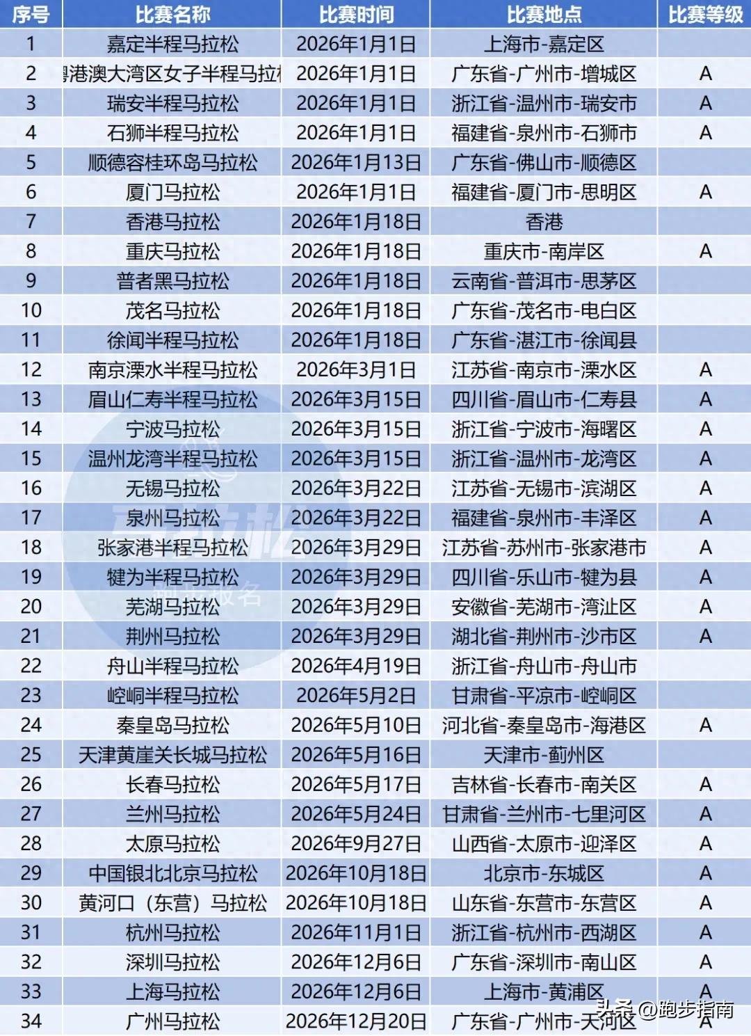 跑友們注意!2026馬拉松日曆越來越明朗,隨着世界田聯發佈升級賽事名單後,又有多個重磅賽事公佈確切日期,同時還有部分賽事升級白金標、迎來十週年慶典...