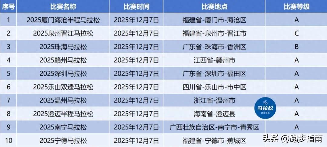 12月的跑圈迎來年末收官熱潮,本週末(12月7日)全國將有10場馬拉松賽事同步開跑,全部集中在南方城市。