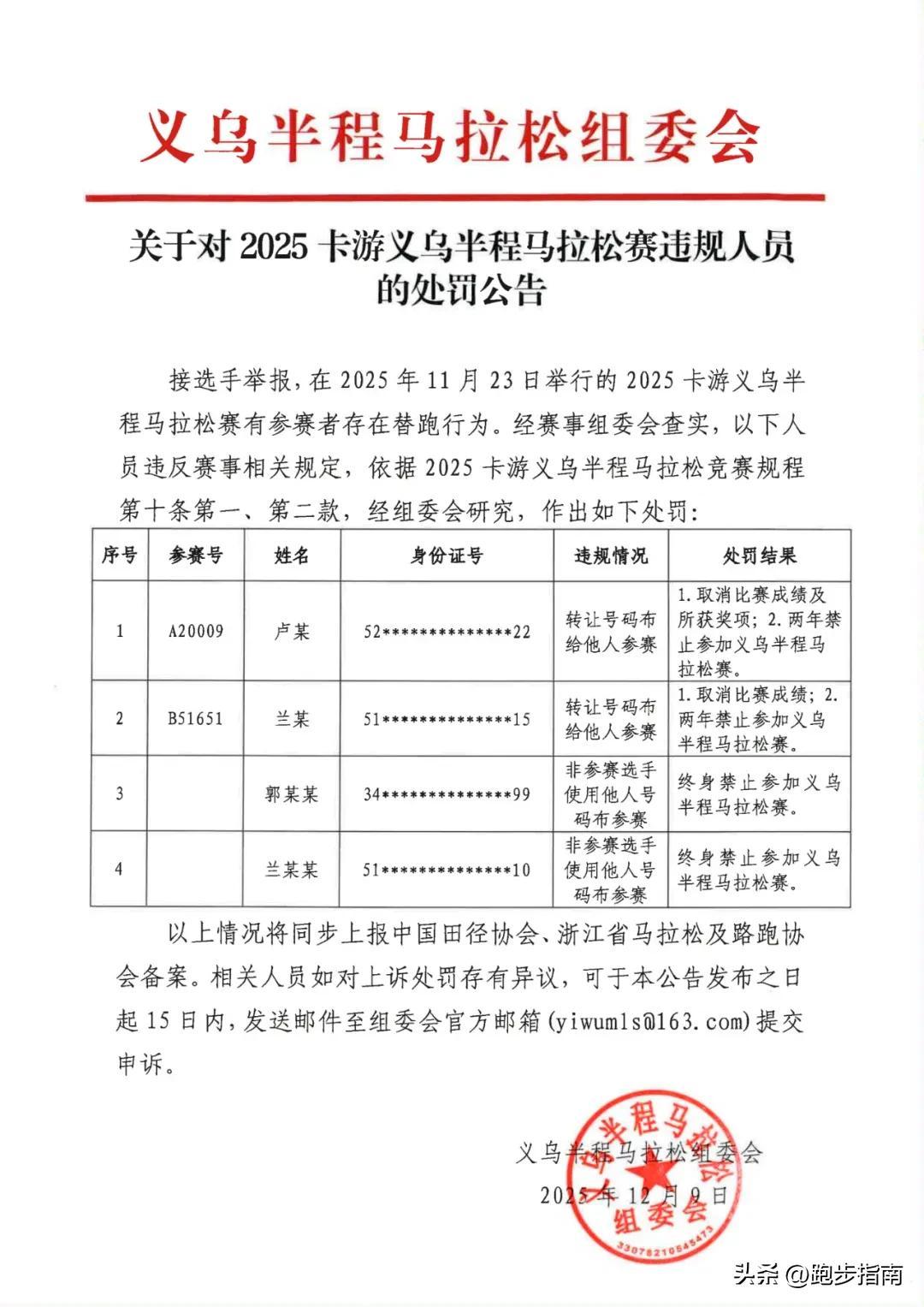 無獨有偶,昨天義烏馬拉松也公佈了處罰公告。