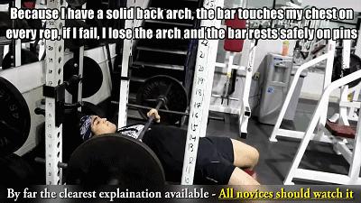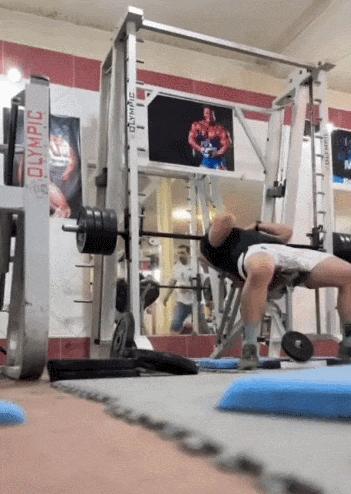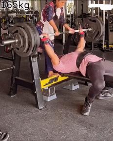男子165kg大重量槓鈴臥推,沒有任何保護措施。