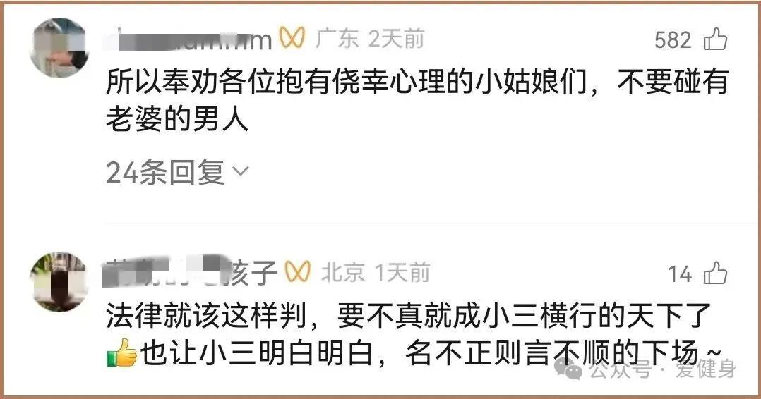 還有網友說,就應該這樣判。要不然小三會橫行天下,要讓小三們明白,名不正言不順的下場。