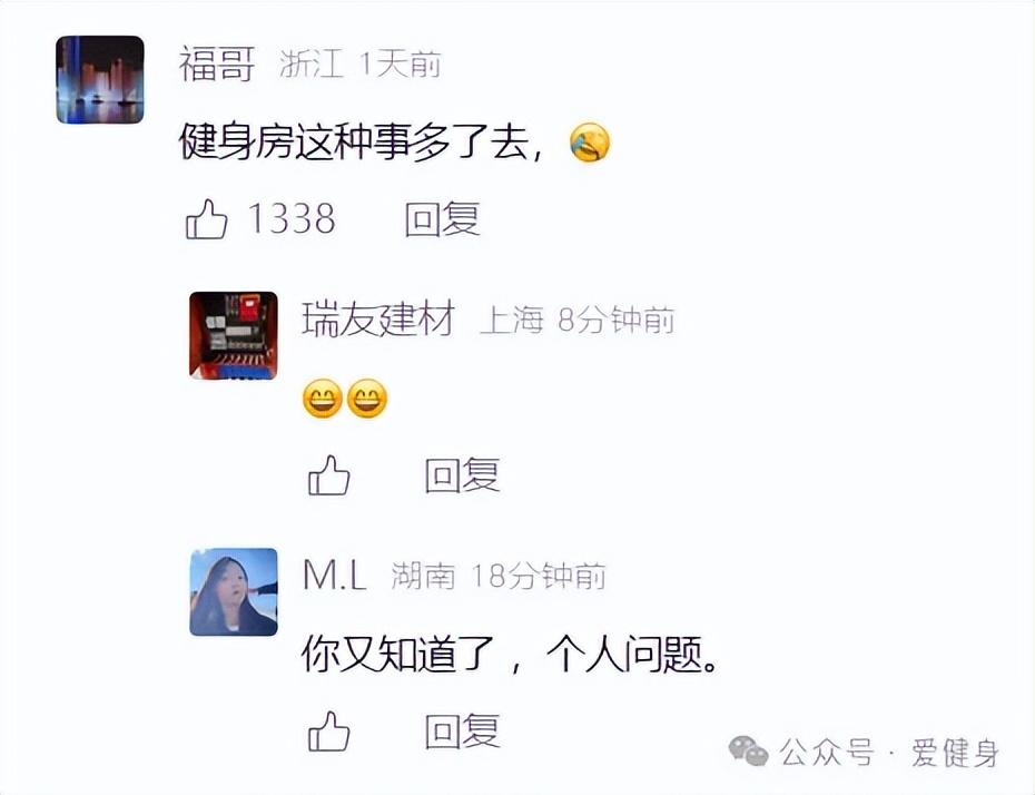 這件事被鍵盤俠看到了,然後就留言說:健身房這種事多了去。