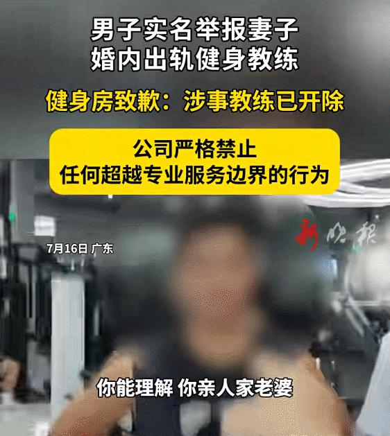 之前有發生過,男子實名舉報妻子,婚內出軌健身教練。然後涉事教練被健身房,以超越專業服務邊界的行爲給開除了。