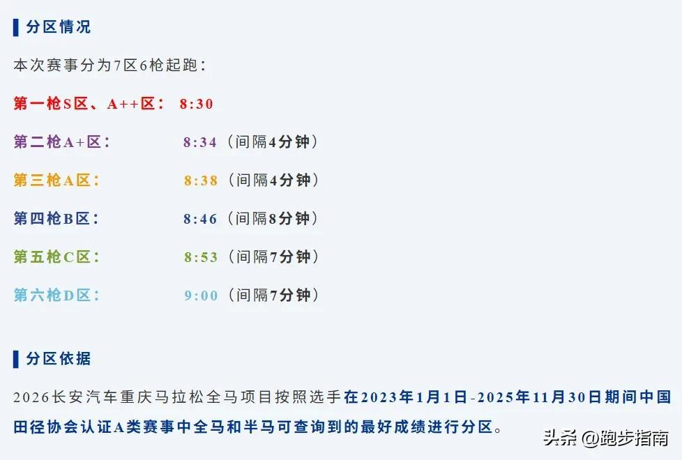 更讓跑圈沸騰的是賽事的分區規則:7個分區、6槍出發,從8:30到9:00依次開跑,S區和A++區以紅色標註,其餘分區顏色各不相同。
