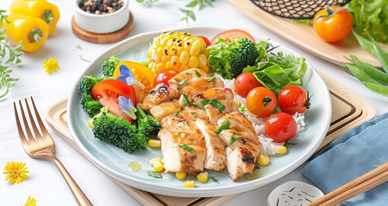 晚餐選擇雞胸肉可以補充優質蛋白,,蛋白質的食物熱效應比較高,身體需要花更多的熱量進行消化,飽腹時間會更久,也有助於保持肌肉量。