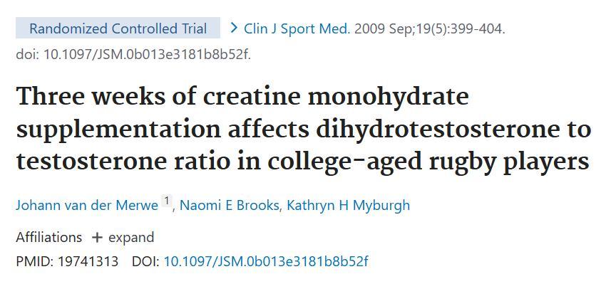 其實,一開始大家認爲肌酸會脫髮,主要是源於2009年發表在《運動醫學臨牀雜誌》上的一項針對橄欖球運動員的研究。