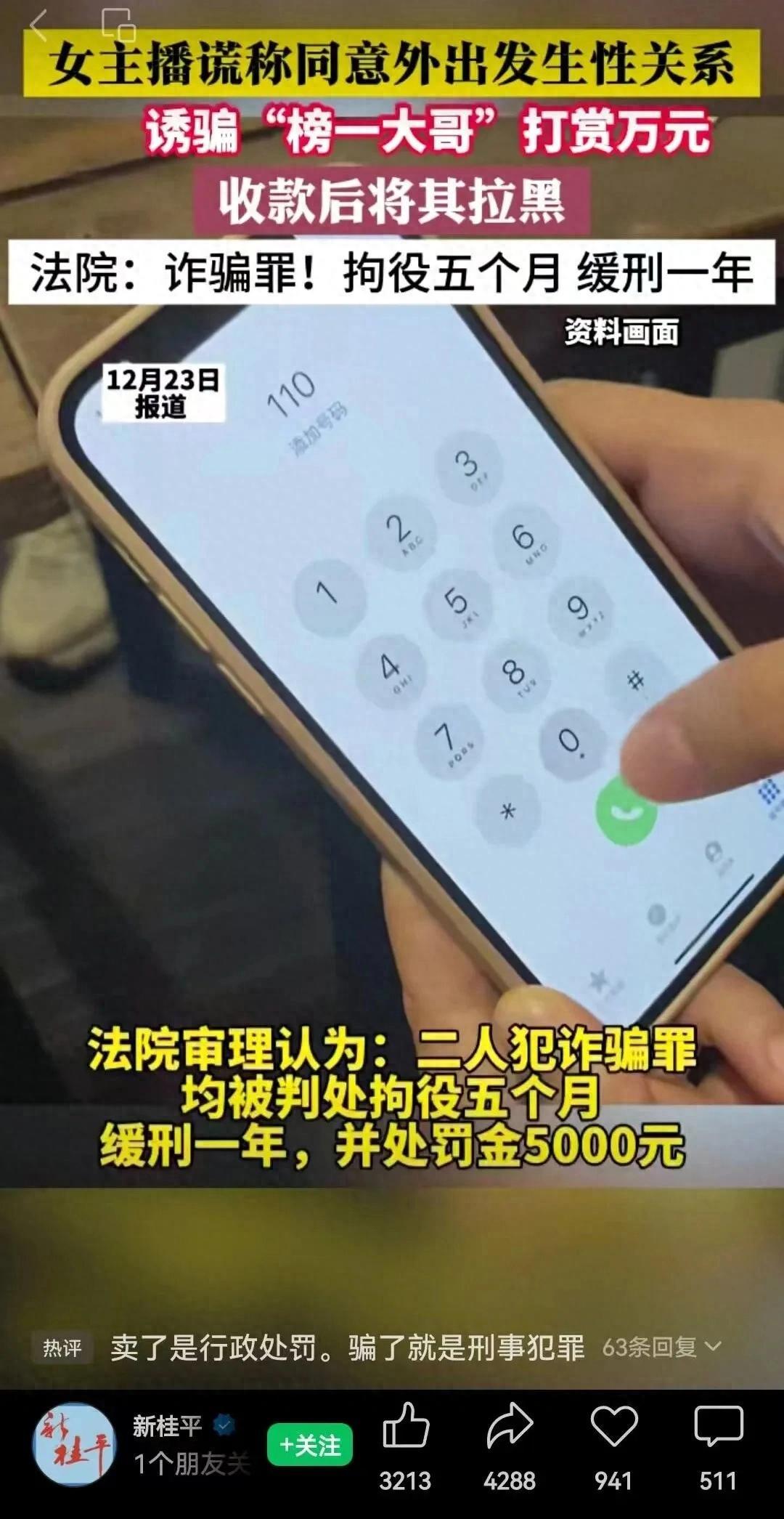 女主播誘騙"榜一大哥"打賞萬元,收款後將其拉黑
