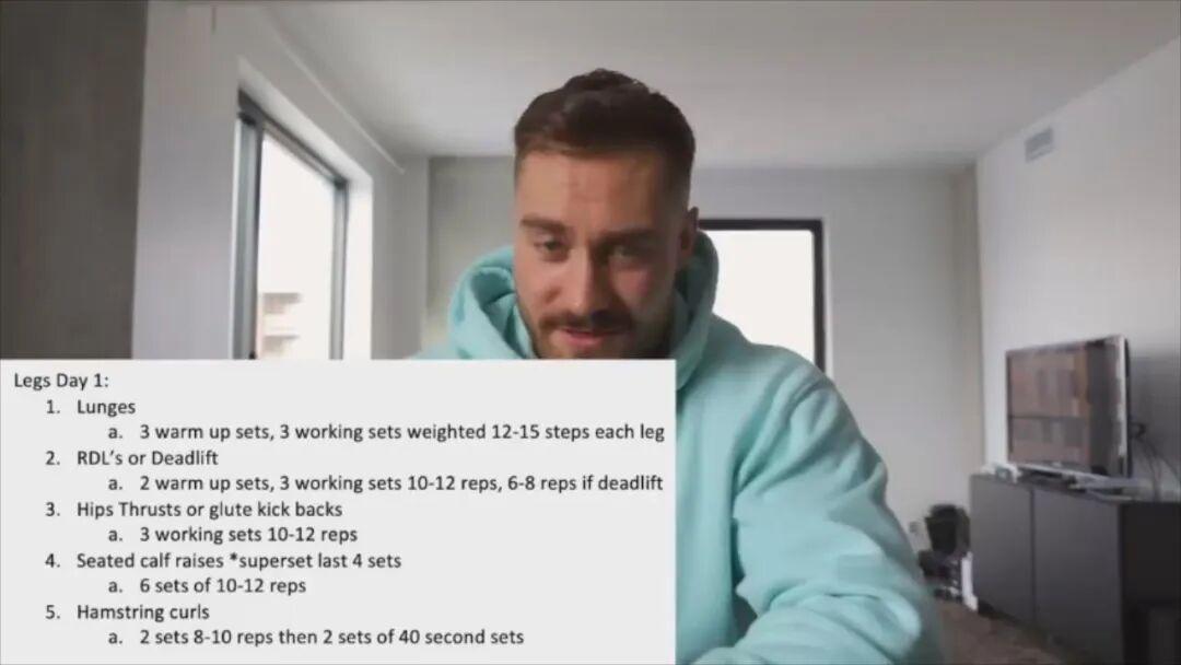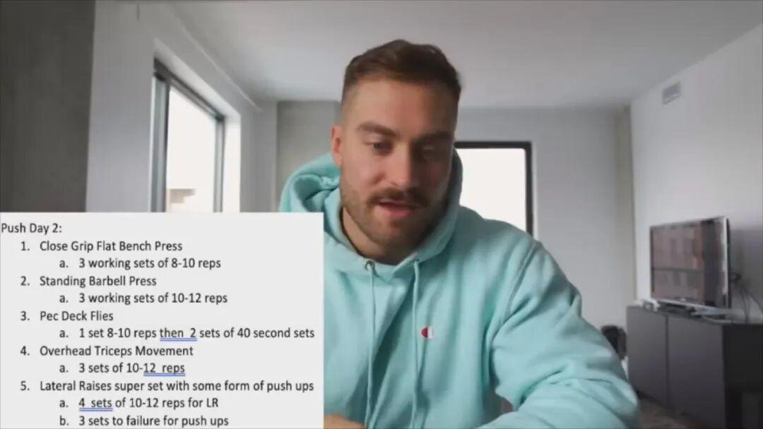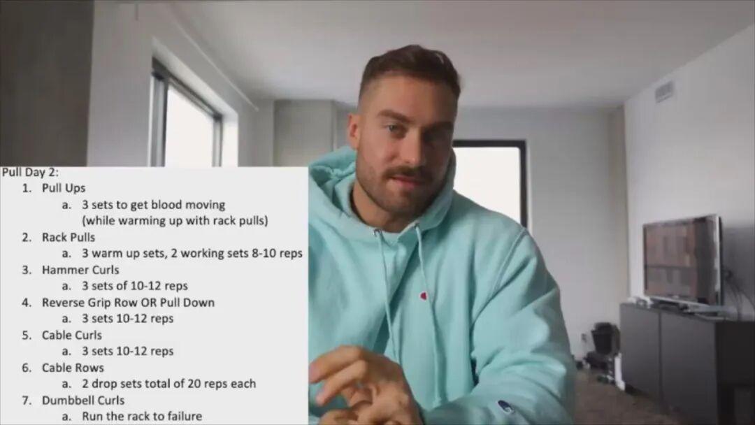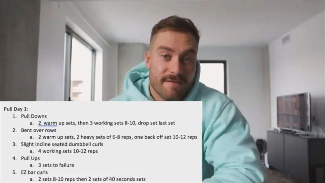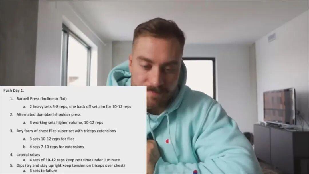 克里斯原本長期使用五分化(胸/肩/手/背/腿),釀成了一些傷病,外加他發現五分化的增肌收益對他來說並不是最佳,所以改成了《推/拉/腿》三分化: