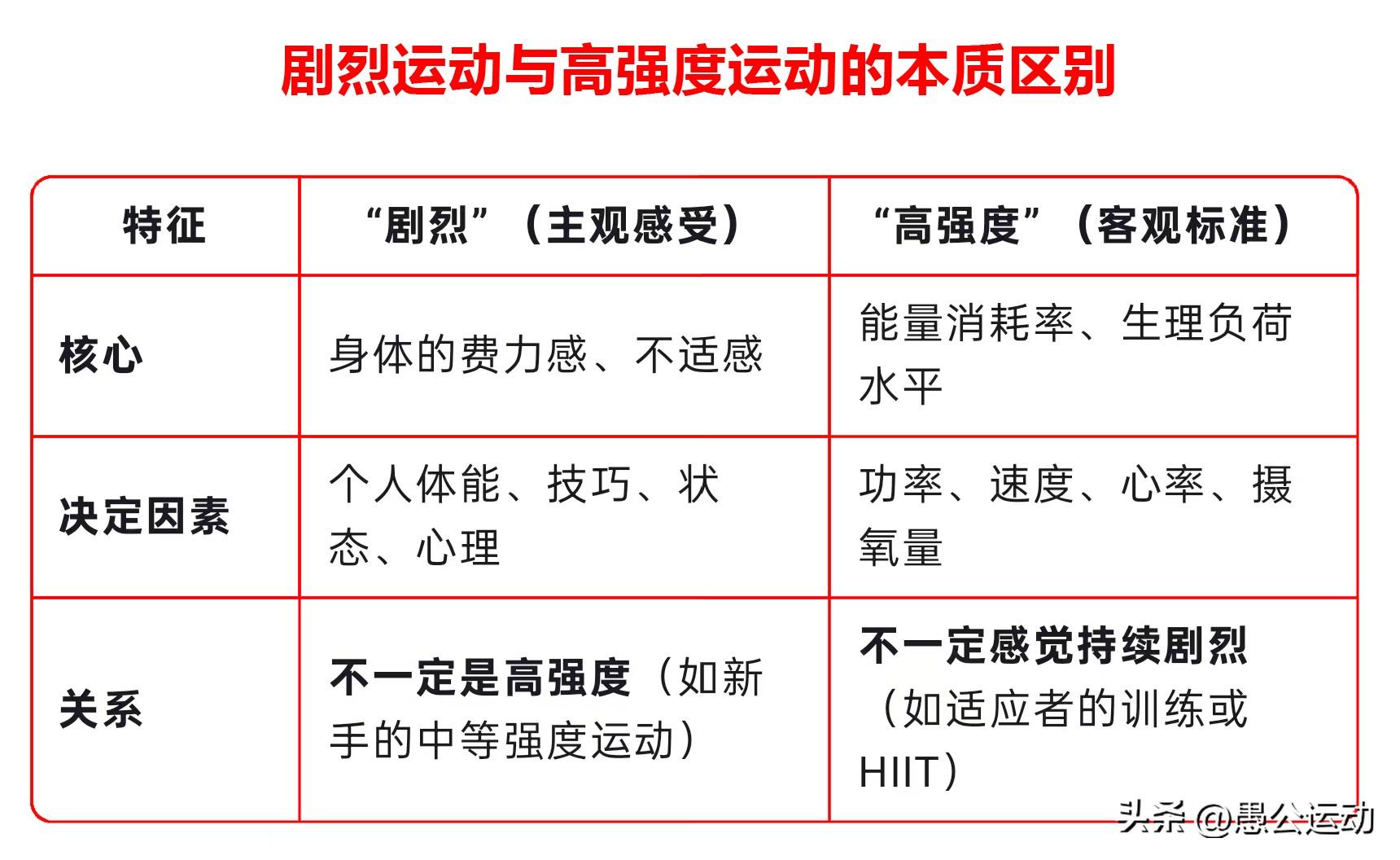 先給出明確結論:劇烈運動未必是高強度運動,而高強度運動,也不一定會讓人產生強烈的“劇烈”感。二者雖聯繫緊密,但核心側重點截然不同,完全不能混爲一談。