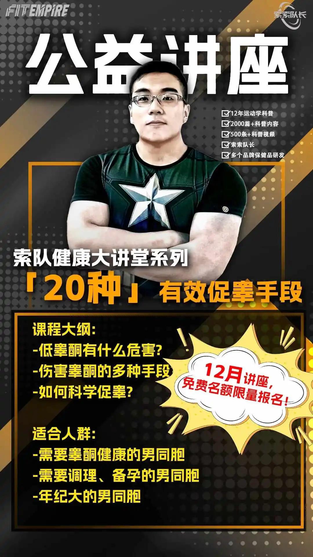 12月底,索隊的《減肥牌面課程》、《促睾20種方法》講座免費返場!