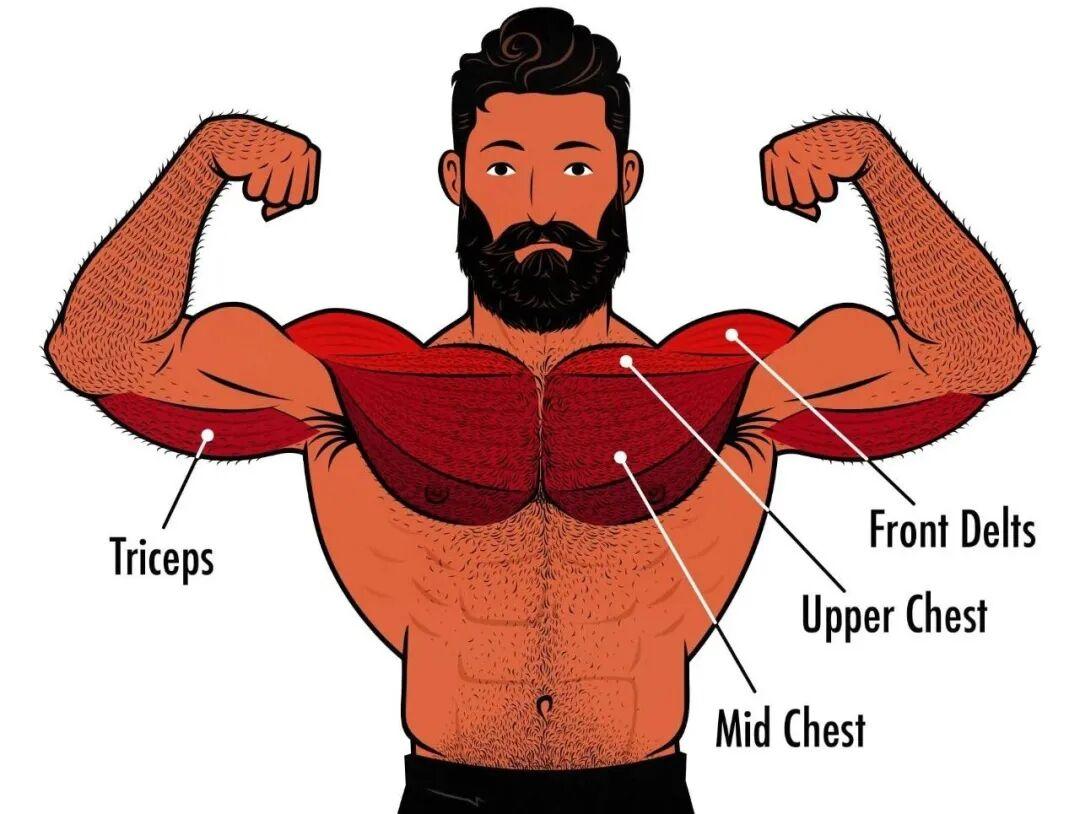 關於詳細版胸肌訓練動作教學,大家可以看這個文章,此處就不講動作細節了:胸肌訓練大全,10個最佳增長胸肌的動作