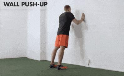 動作要點:面對牆壁站立,距離牆壁約一臂遠,身體保持一條直線,不要塌腰、撅屁股或弓背。緩慢屈肘,手肘自然向身體兩側打開約45度角,直到鼻子或胸部輕輕靠近牆壁。